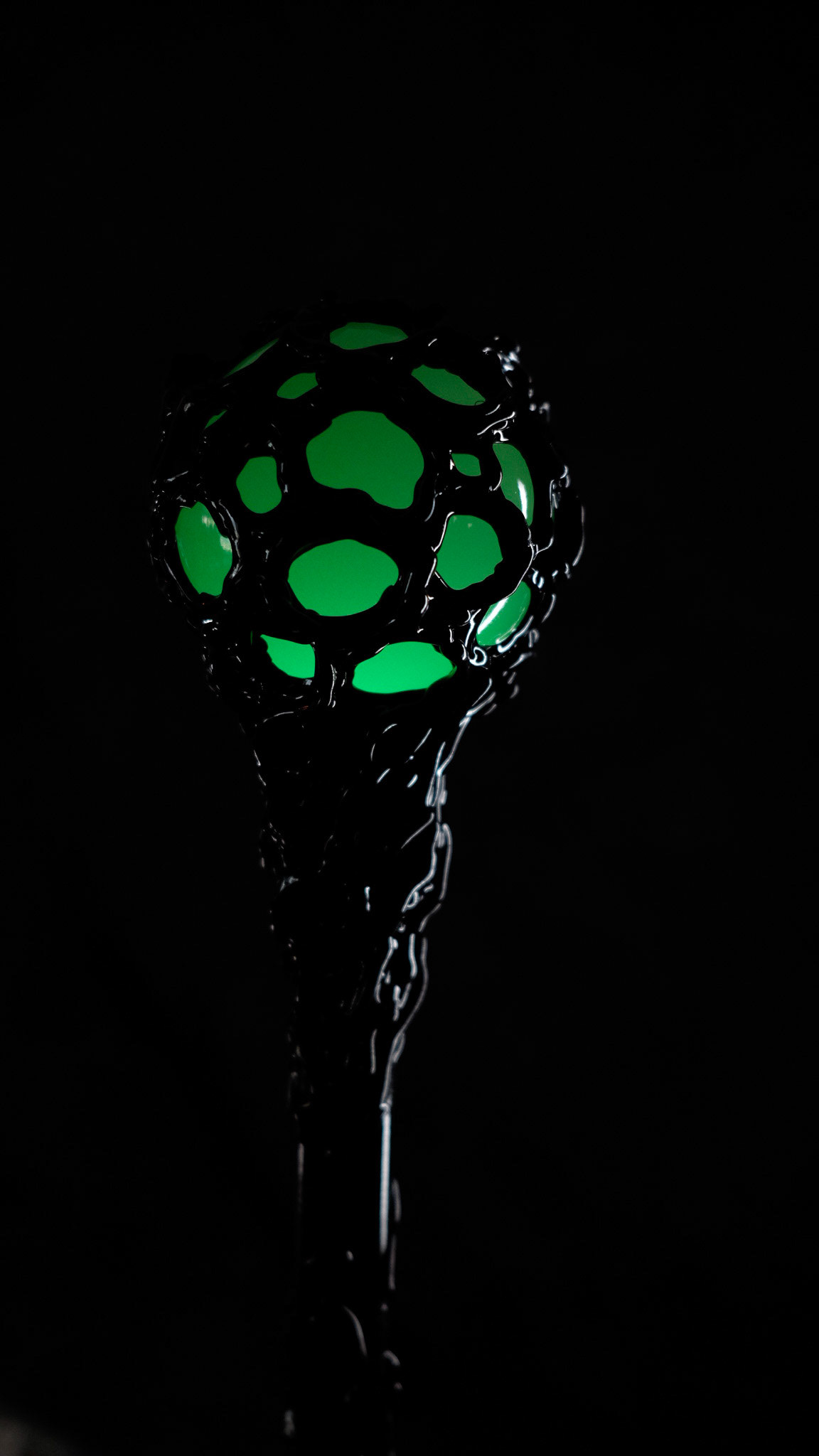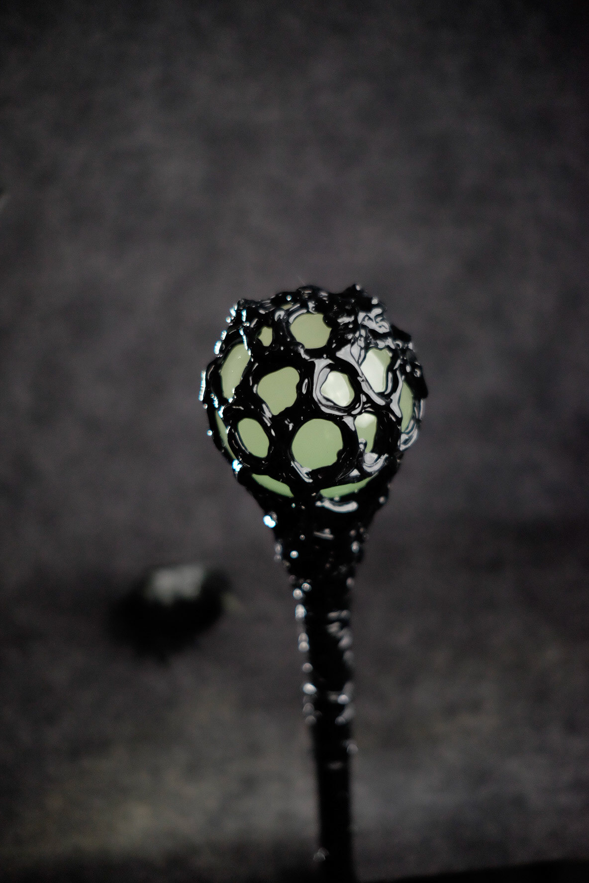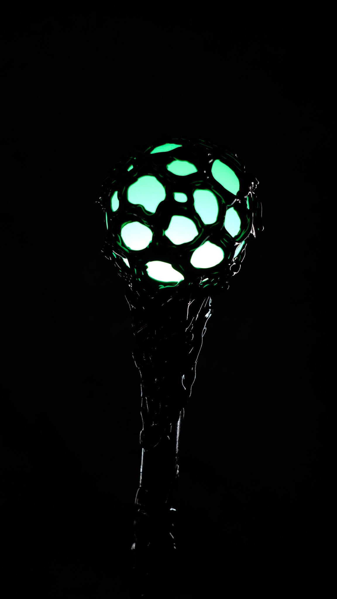 Includes the UV-LED + push button. While the button is pressed, the glow in the dark orb gets charged . After releasing the button the orb remains charged for a while with a lingering green afterglow. The battery chamber is easily accessible and disguised inside the neck. This upgrade requires 2 x AAA batteries.