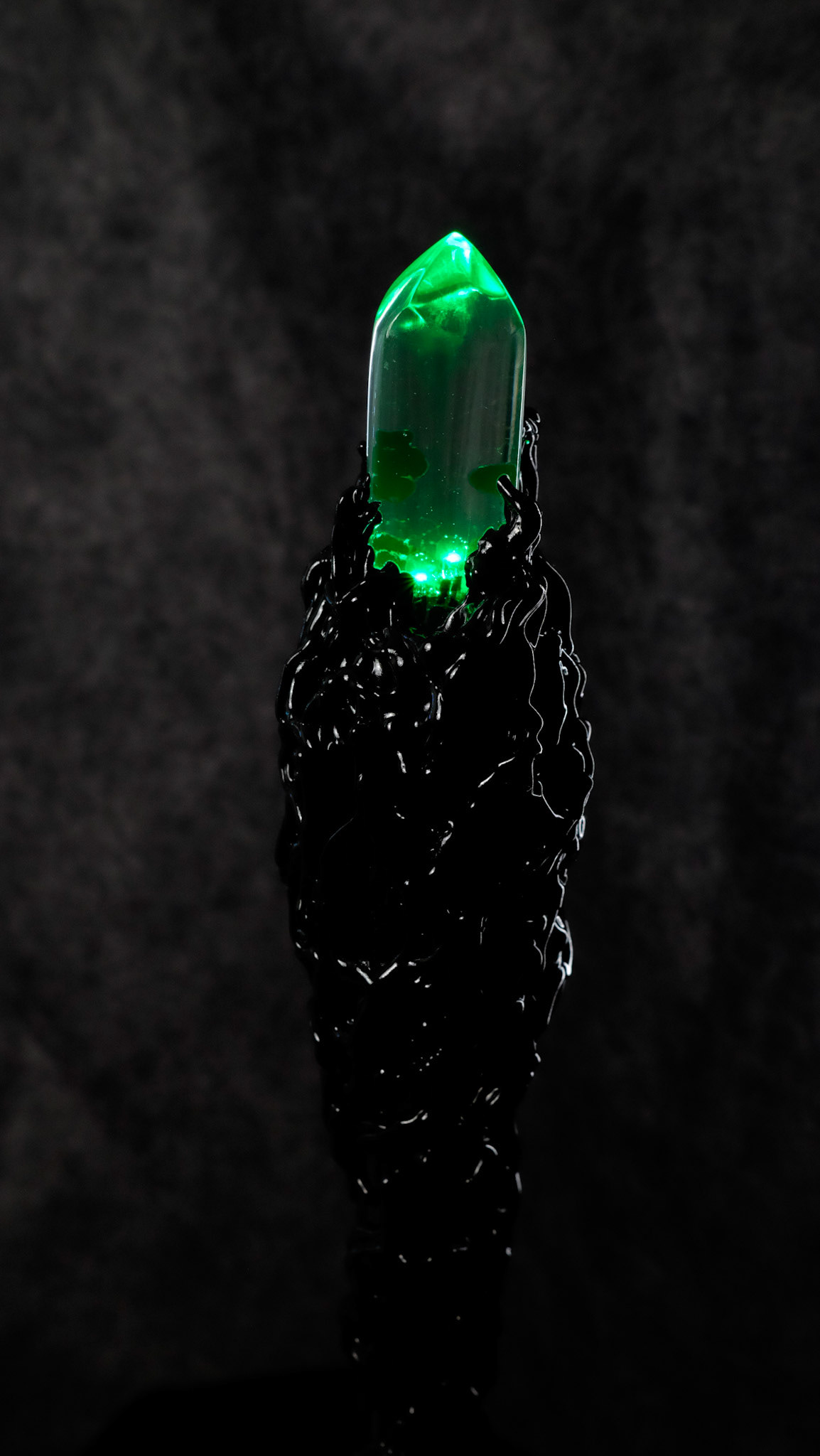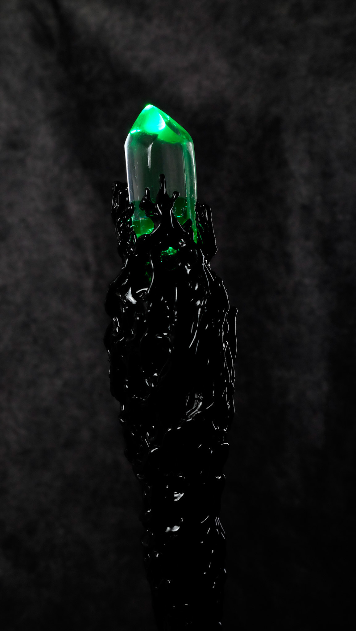 This "Green Flame Wizard Staff" receives its aesthetic quality through the inspiration that comes from fairy tales and fantasy. The design started in January 2023, and has continued to improve gradually throughout he year, as this listing has continued to satisfy many customers. The design now looks better than ever. The electronics are bulletproof and neatly executed, plus there are now more options available.